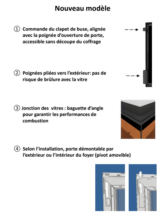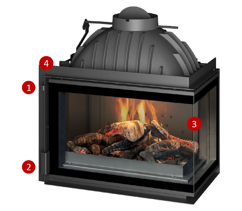 - * jonction des vitres avec une baguette fine et discrète, qui préserve la visibilité tout en optimisant la performance de combustion.