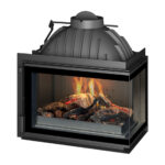 Le système vitre propre permet de ralentir l’encrassement du vitrage. Une arrivée d’air sur le haut de la vitre crée un voile de protection. L’ air préchauffé est propulsé le long du vitrage. Il déclenche la combustion des gaz et des matières volatiles protégeant ainsi la vitre contre la fumée et le dépôt de suie.
