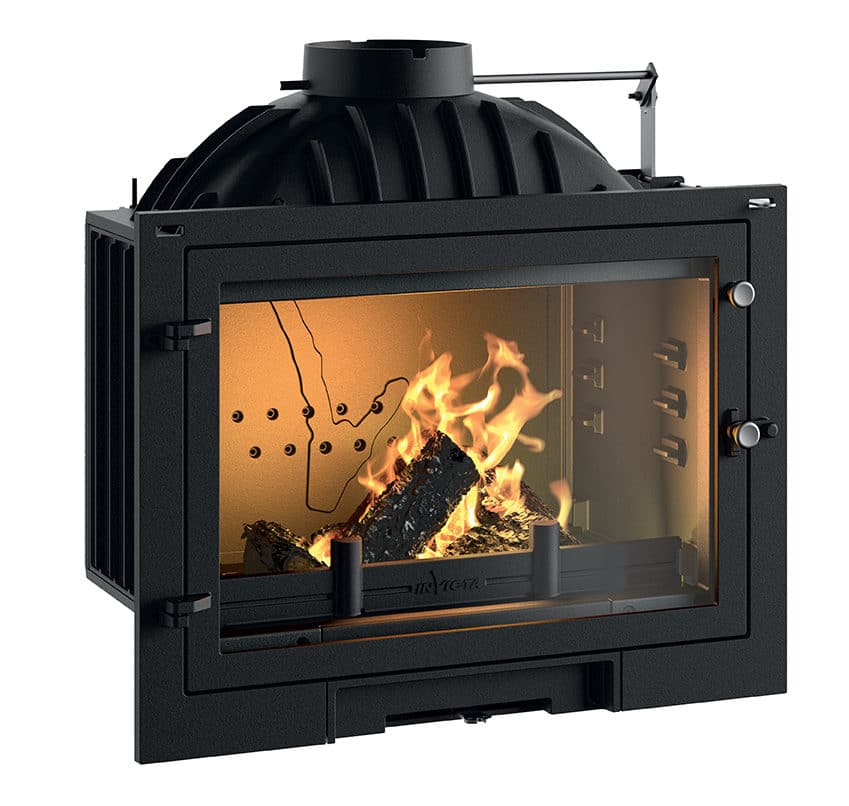Le système vitre propre permet de ralentir l’encrassement du vitrage. Une arrivée d’air sur le haut de la vitre crée un voile de protection. L’ air préchauffé est propulsé le long du vitrage. Il déclenche la combustion des gaz et des matières volatiles protégeant ainsi la vitre contre la fumée et le dépôt de suie.
