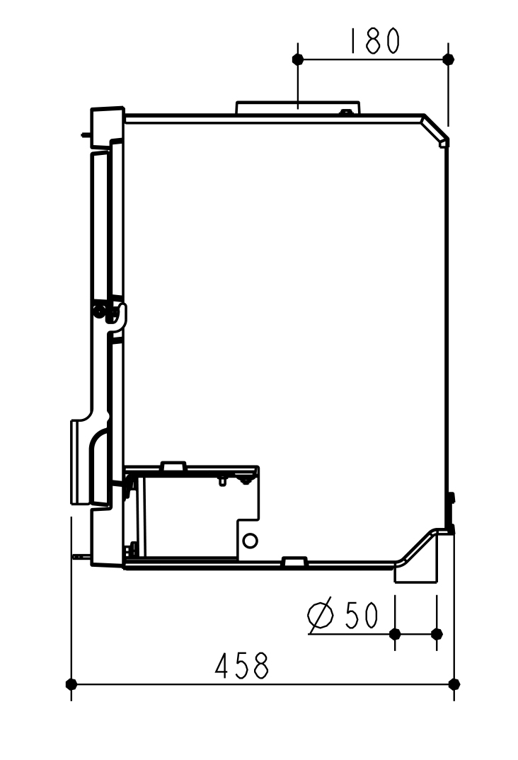 Le système vitre propre permet de ralentir l’encrassement du vitrage. Une arrivée d’air sur le haut de la vitre crée un voile de protection. L’ air préchauffé est propulsé le long du vitrage. Il déclenche la combustion des gaz et des matières volatiles protégeant ainsi la vitre contre la fumée et le dépôt de suie.