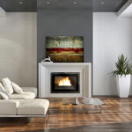 Vitre sérigraphiée positionnée à l’extérieur de la porte offrant un style moderne et une belle vision des flammes.