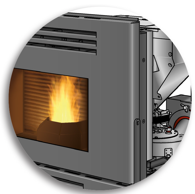 * Réglage de la température de consigne : vous choisissez la température ambiante souhaitée dans la pièce. Elle est mesurée par une sonde filaire. Le poêle à granulés régule sa puissance pour atteindre et maintenir la valeur demandée.