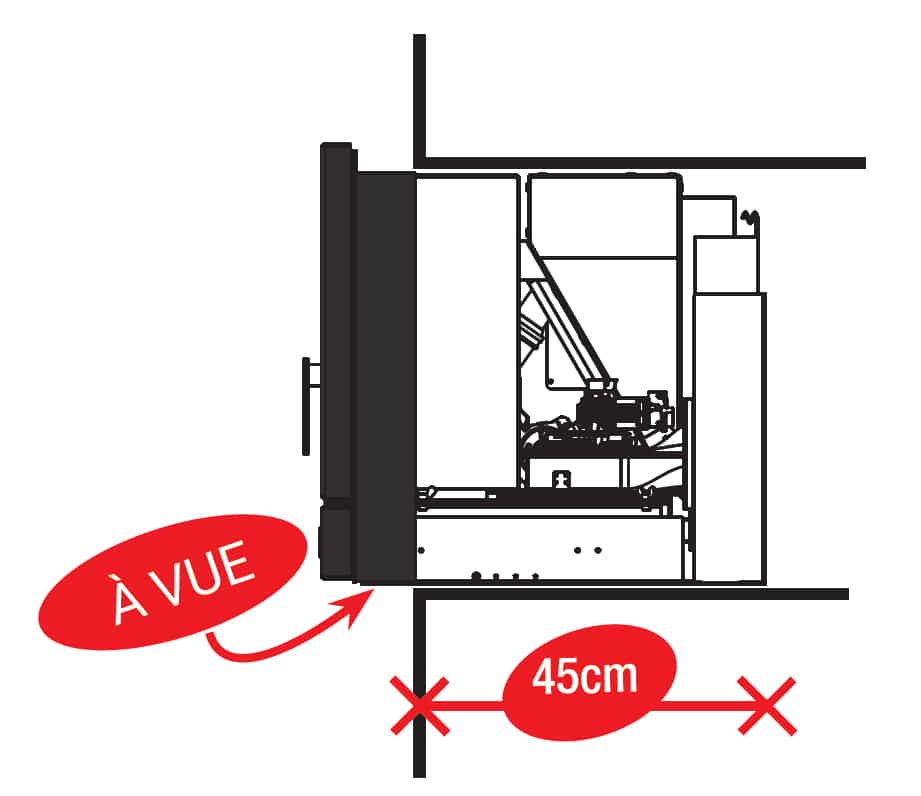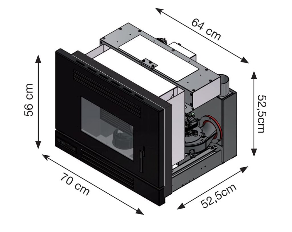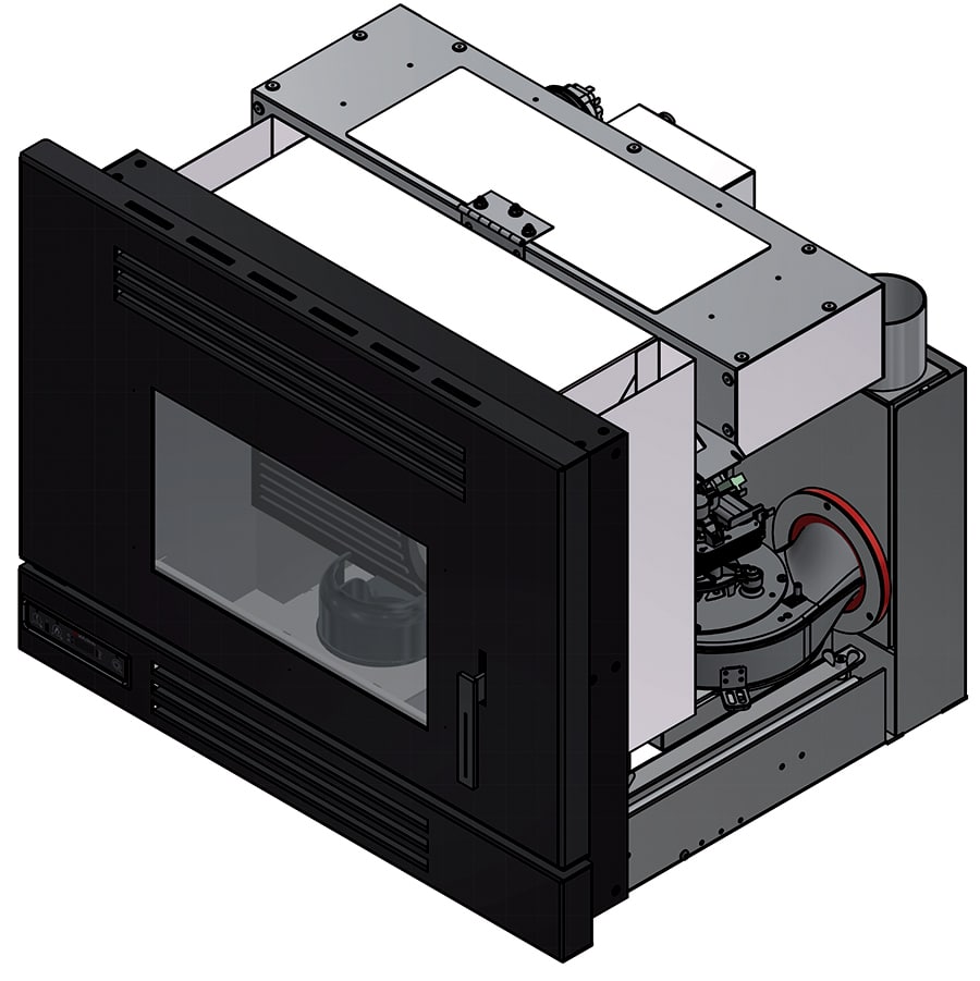 Le ventilateur de distribution d’air chaud frontal est de type tangentiel. Il diffuse l’air chaud dans la pièce.