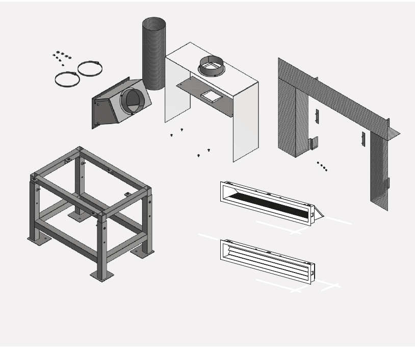 Trémie de chargement P697004 ; Chaise support P697002, Grille d’encadrement P697003 ; Kit aération C02237