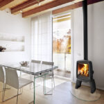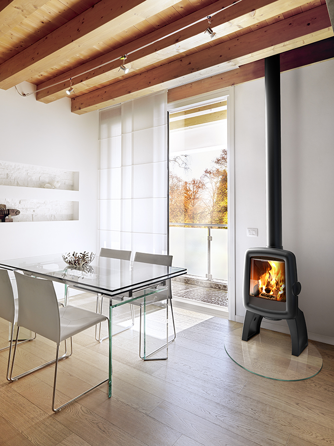 Le système vitre propre permet de ralentir l’encrassement du vitrage. Une arrivée d’air sur le haut de la vitre crée un voile de protection. L’ air préchauffé est propulsé le long du vitrage. Il déclenche la combustion des gaz et des matières volatiles protégeant ainsi la vitre contre la fumée et le dépôt de suie.