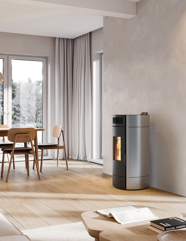 Avec sa forme arrondie, ce poêle à granulés rouge apportera du peps à votre décoration intérieure. Il dispose du Wi-Fi intégré et peut donc être piloté depuis un smartphone.
