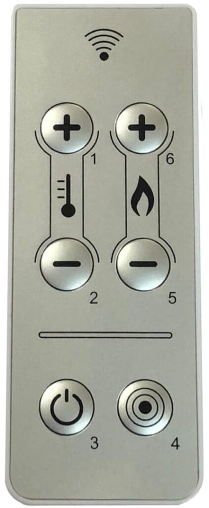 Télécommande permettant de piloter le poêle à distance : l’allumer ou l’éteindre, régler la puissance ou la température ambiante en mode manuel.