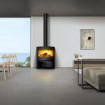 Le système vitre propre permet de ralentir l’encrassement du vitrage. Une arrivée d’air sur le haut de la vitre crée un voile de protection. L’ air préchauffé est propulsé le long du vitrage. Il déclenche la combustion des gaz et des matières volatiles protégeant ainsi la vitre contre la fumée et le dépôt de suie.