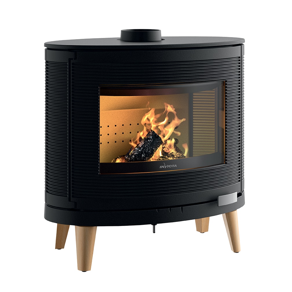 L’association des pieds en hêtre et de la fonte donne un style unique et naturel au poêle. Photo non contractuelle : le bois étant un matériau naturel, de légères différences de teintes peuvent se présenter d’un poêle à l’autre.